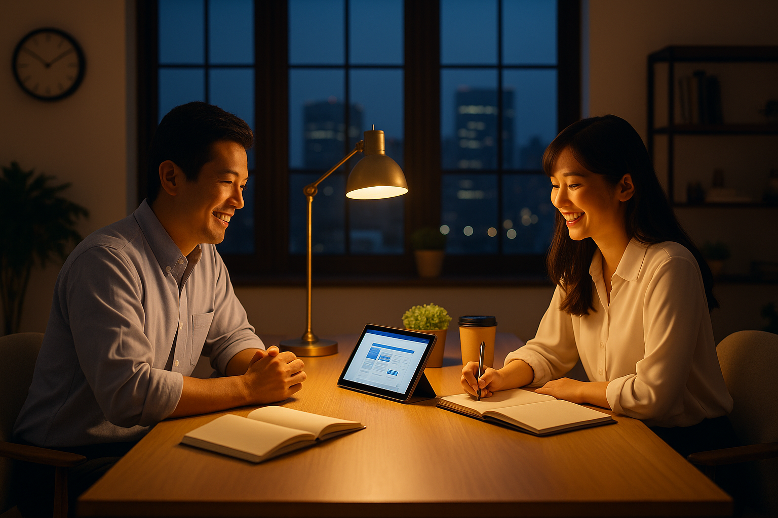ウェブファーストでは、「日中は忙しくて時間が取れない」というお客様のために、営業時間外の打ち合わせにも柔軟に対応しております。