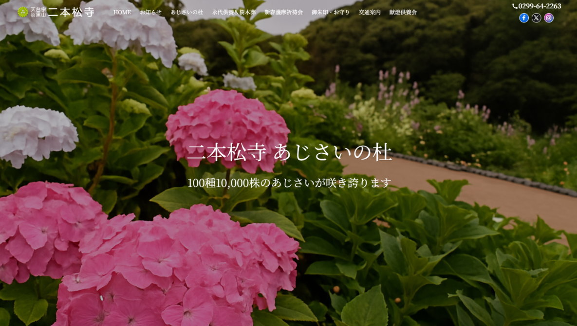 あじさいで有名な、潮来市の「二本松寺」様の公式サイトを、この度フルリニューアルいたしました。