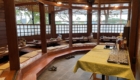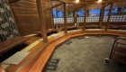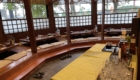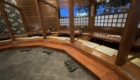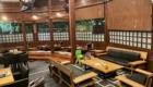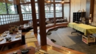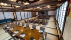 • 最大50名まで利用可能な12角形の吹き抜けホール。離れと掘り炬燵側の2構成となっており、木組みの高い天井と30m以上の大黒柱の開放感ある構造が特長。