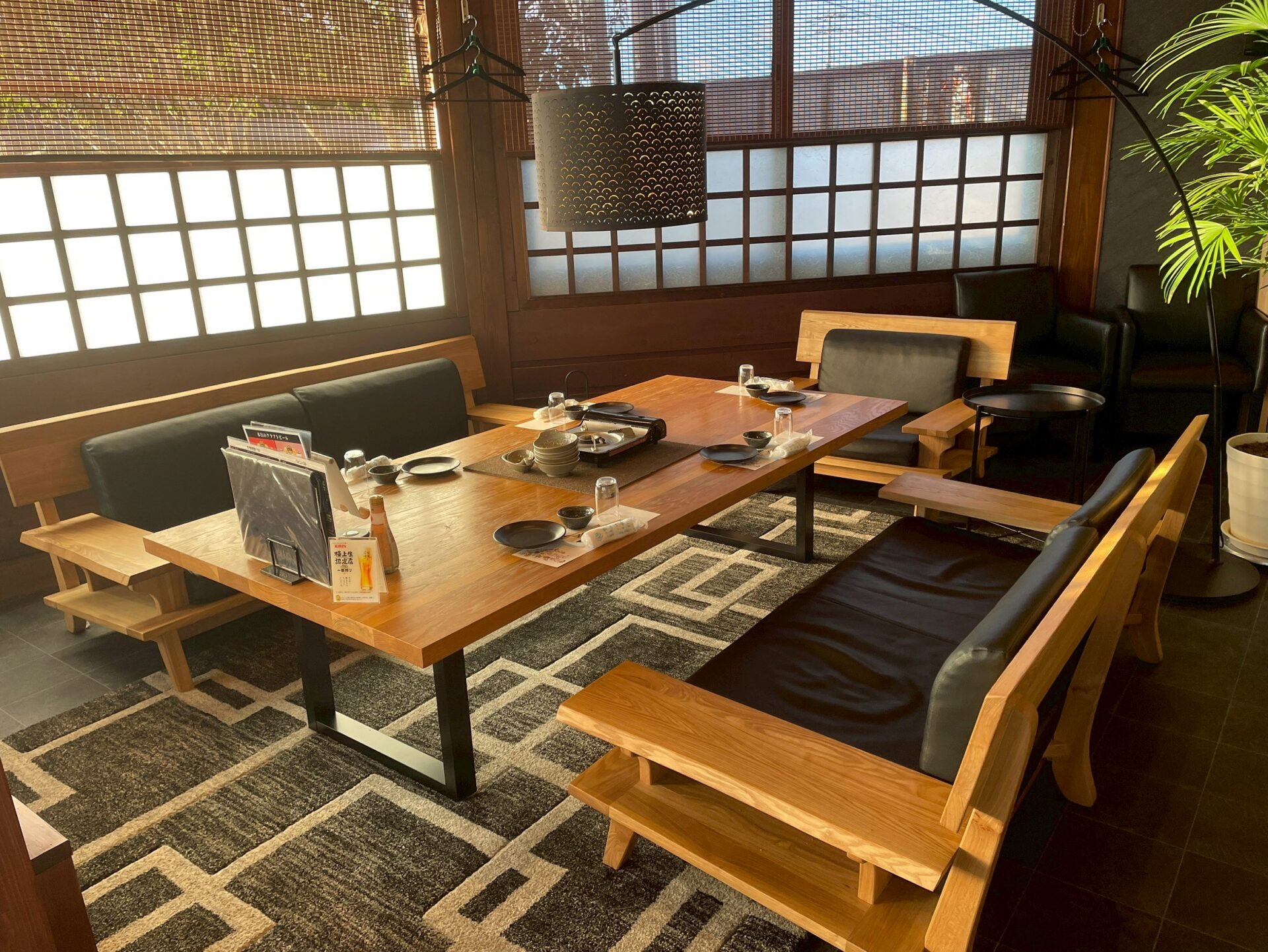 • 広いダイニングテーブルと上質なソファ席で構成。